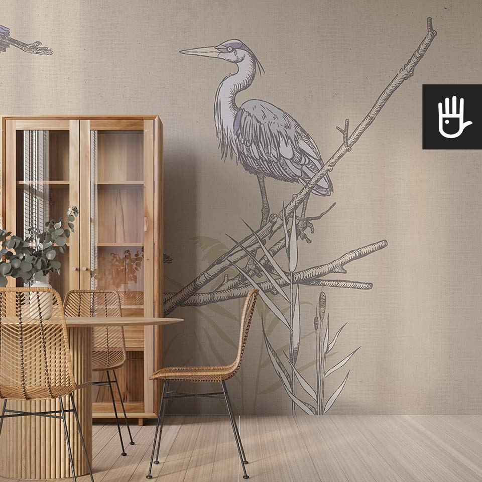 Fototapeta Beżowe czaple z kolekcji Kamila Kowalczyka to połączenie minimalizmu i natury w artystycznym wydaniu przypominająca szkic. Delikatny rysunek czapli na tle subtelnego beżowego płótna wprowadza do wnętrza harmonię i ukojenie. Utrzymana w stonowanej palecie barw, doskonale odnajdzie się w przestrzeniach, które cenią spokój, światło i naturalne materiały.