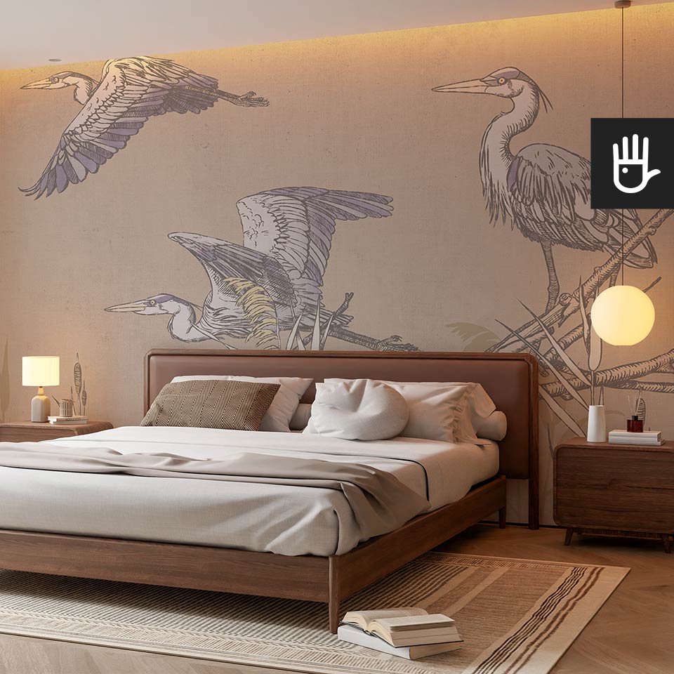 Fototapeta Beżowe czaple idealnie sprawdzi się w salonie, sypialni czy gabinecie, gdzie doda elegancji, jednocześnie nie dominując aranżacji. Motyw ptaków w locie wprowadza do wnętrza wrażenie przestrzeni i swobody, pozwalając na łatwe łączenie dekoracji z wnętrzami w stylu boho, ale też w nowoczesnych aranżacjach.
