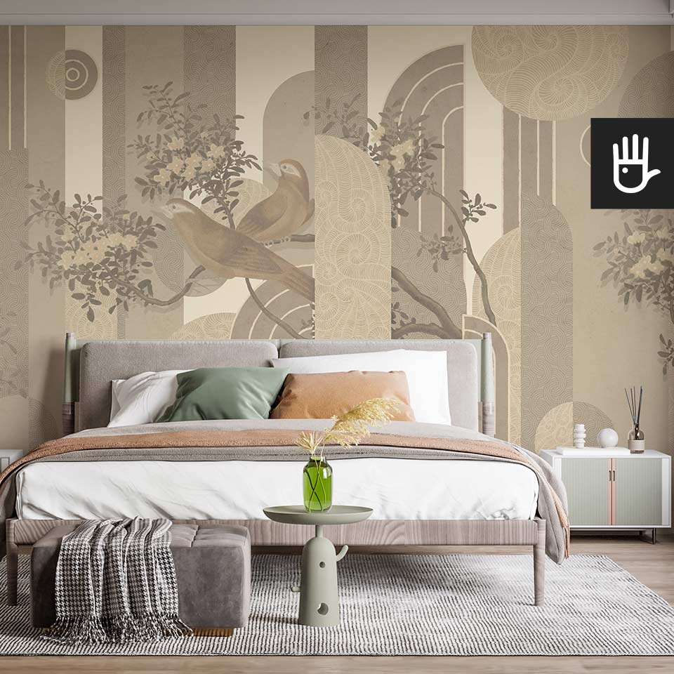 Fototapeta Beżowe ptaki idealnie wpasują się w aranżacje z elementami boho, ale też pełne surowych prostych form. Stonowana kolorystyka pozwoli na dopasowanie wzoru nie tylko do słonecznego salonu, ale też przytulnej sypialni czy nawet pokoju dziecięcego.