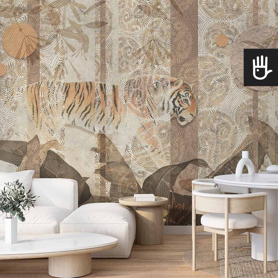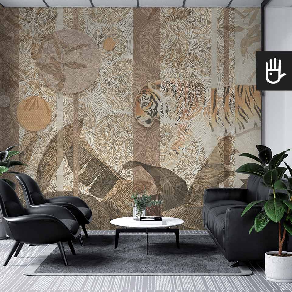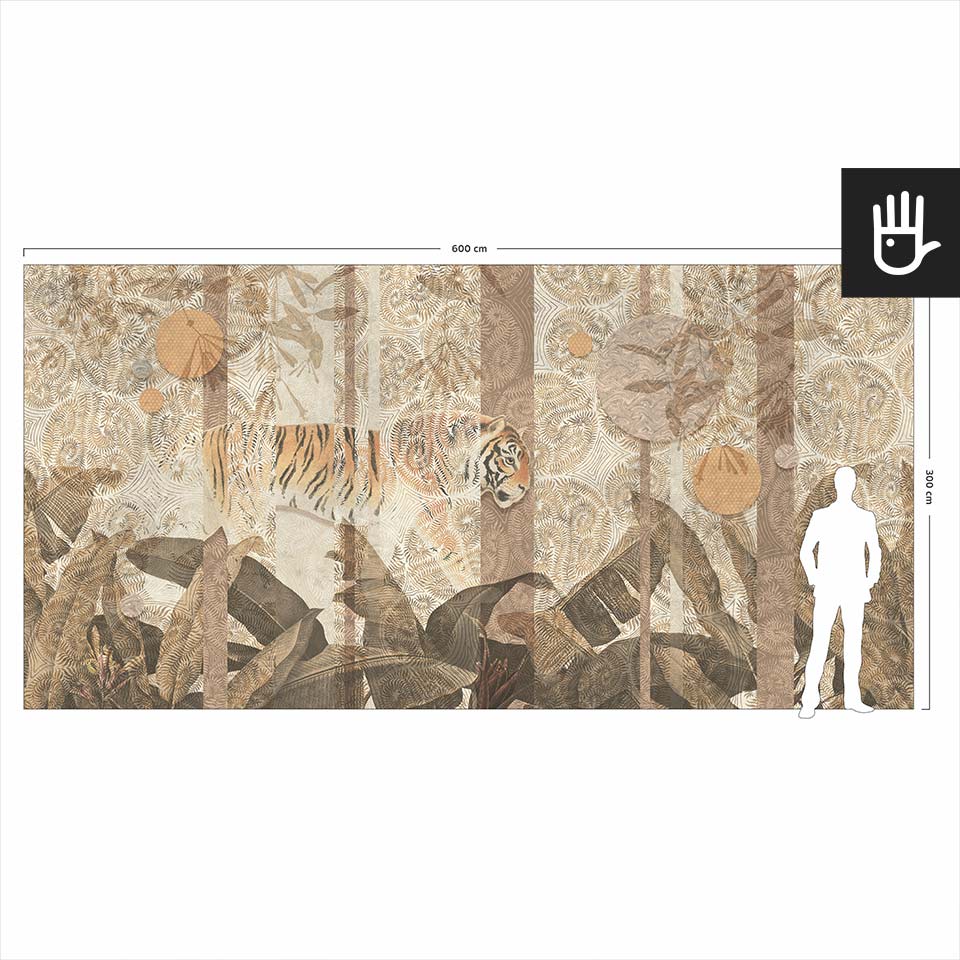 Fototapeta Beżowy Tygrys idealnie wpasuje się w ciepłe wnętrza pełne kwiatów, kolorów i drewna. Tropikalny wzór pozwoli ocieplić przestronne wnętrza, nadając im charakteru, ale sprawdzi się też w małych przytulnych aranżacjach. Botaniczne motywy w połączeniu z stonowaną paletą barw tworzą piękny obraz, który przy użyciu odrobiny wyobraźni może stać się podstawą do tworzenia ciekawych opowieści pełnych tropikalnych motywów.