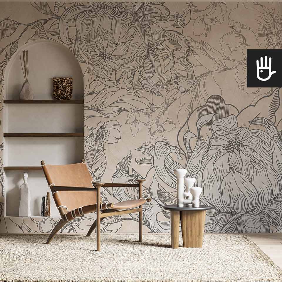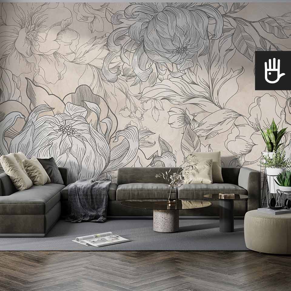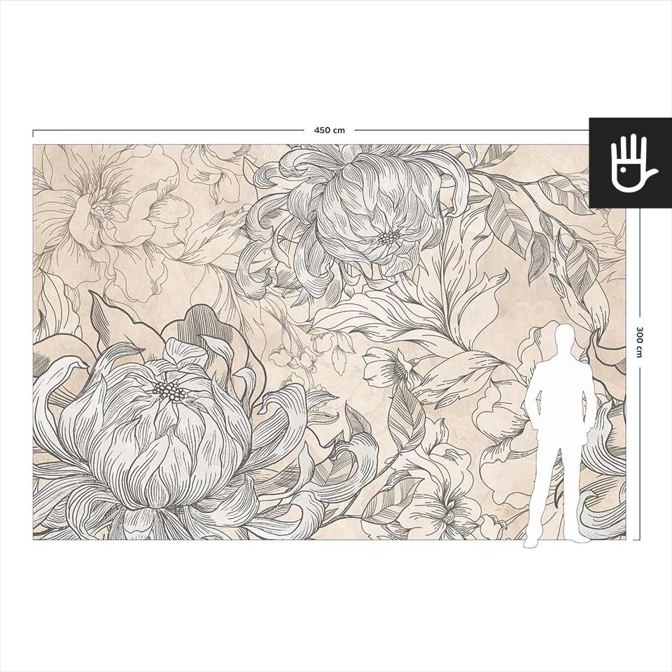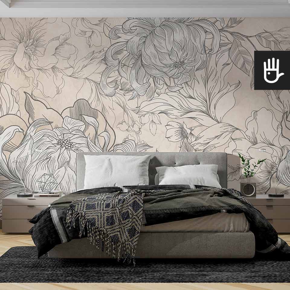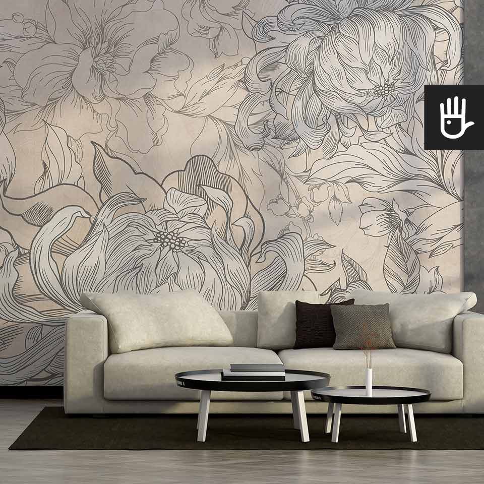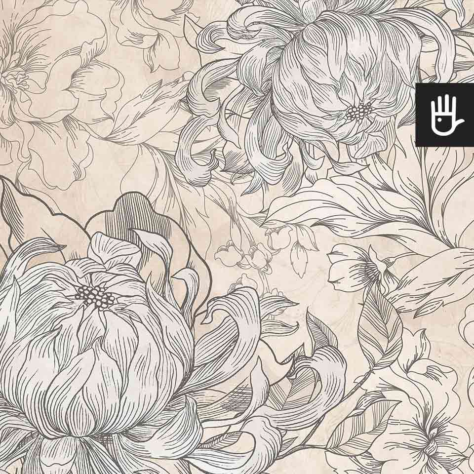 Fototapeta Kwiaty Hestii z kolekcji Dudek Manufaktura to ponadczasowa elegancka dekoracja, która zamieni zwykłe wnętrze w ogród pełen stylowych kwiatów. Delikatne odcienie beżu w połączeniu z grafitowymi konturami tworzą idealną kompozycję, która ozdobi, ale nie obciąży dodatkowo wnętrza. Jaśniejsze kwitnące kwiaty optycznie powiększą przestrzeń, a ciemniejsze zatapiające się w tle dodadzą głębi.